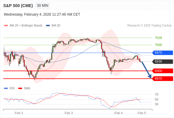 在 6970 之下,看跌,目标价位为 6900 ,然后为 6870 。