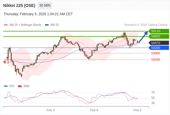 在 54200 之上,看涨,目标价位为 54820 ,然后为 55110 。