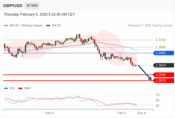 在 1.3665 之下,看跌,目标价位为 1.3590 ,然后为 1.3570 。