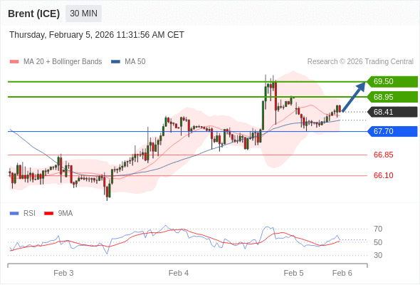 在 67.70 之上,看涨,目标价位为 68.95 ,然后为 69.50 。