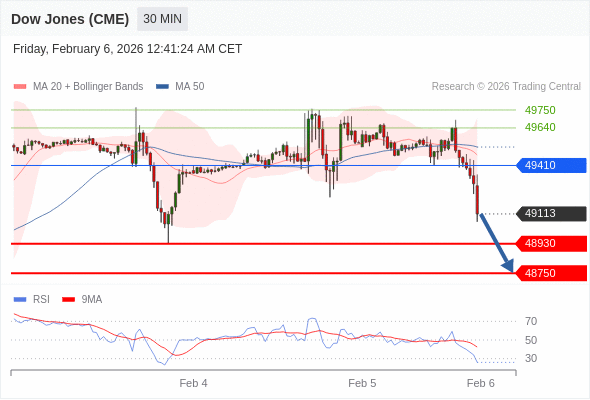 在 49410 之下,看跌,目标价位为 48930 ,然后为 48750 。