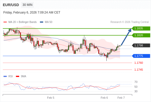 在 1.1775 之上,看涨,目标价位为 1.1820 ,然后为 1.1835 。