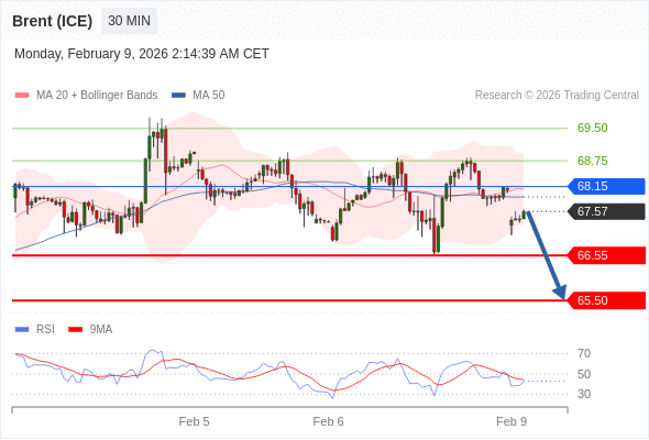 交易策略: 在 68.15 之下,看跌,目标价位为 66.55 ,然后为 65.50 。