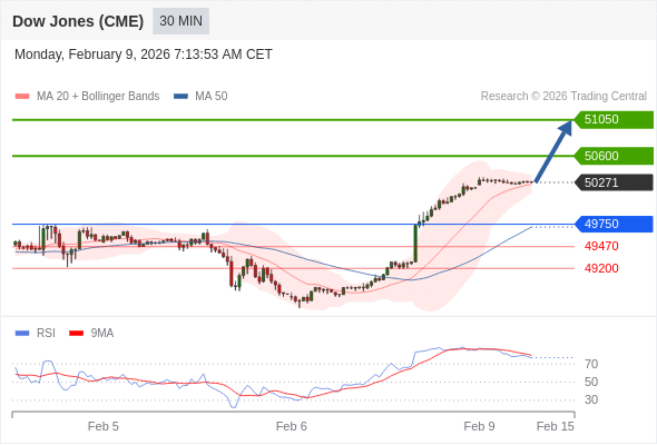 在 49750 之上,看涨,目标价位为 50600 ,然后为 51050 。