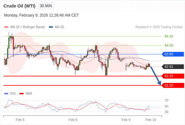 在 63.85 之下,看跌,目标价位为 62.20 ,然后为 61.50 。