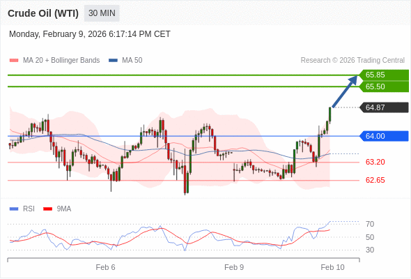 交易策略: 在 64.00 之上,看涨,目标价位为 65.50 ,然后为 65.85 。