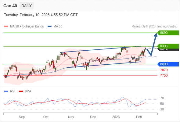 Cac 40 短线: 新一轮上升。