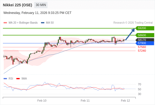 在 57900 之上,看涨,目标价位为 58600 ,然后为 59200 。