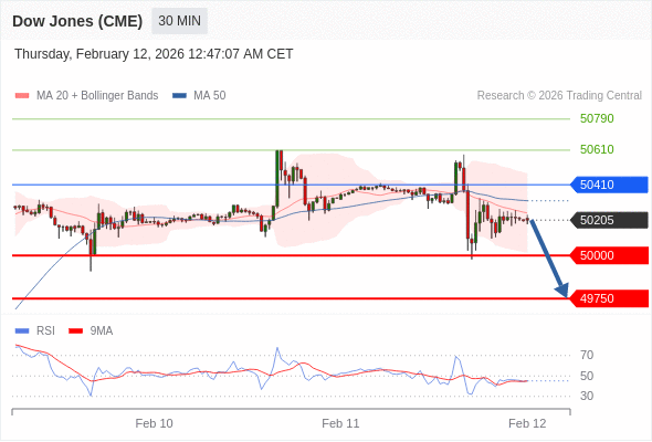 交易策略: 在 50410 之下,看跌,目标价位为 50000 ,然后为 49750 。