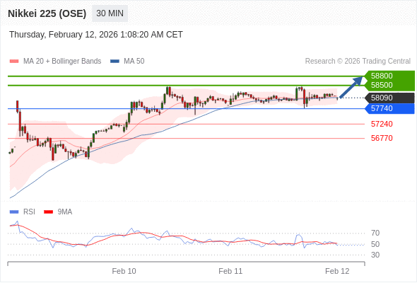 在 57740 之上,看涨,目标价位为 58500 ,然后为 58800 。