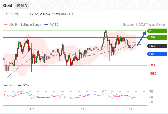 在 5040 之上,看涨,目标价位为 5090 ,然后为 5110 。