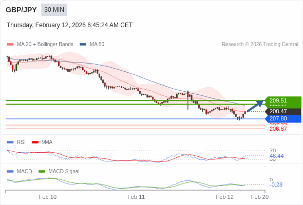 替代方案: 在207.80以下,期待207.22和206.87。