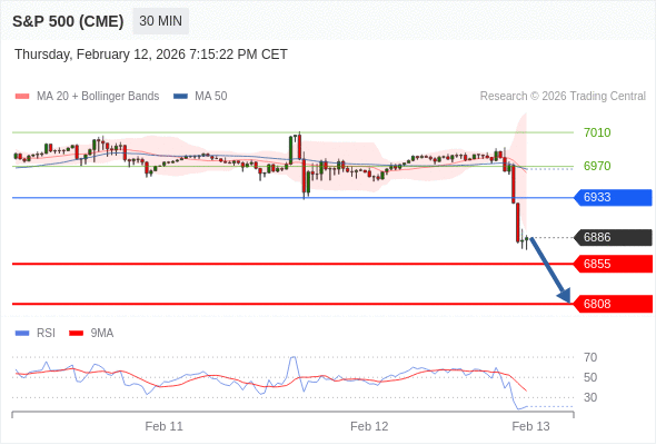 美国标普500指数期货 (H6) 当日内: 目标位为6855。