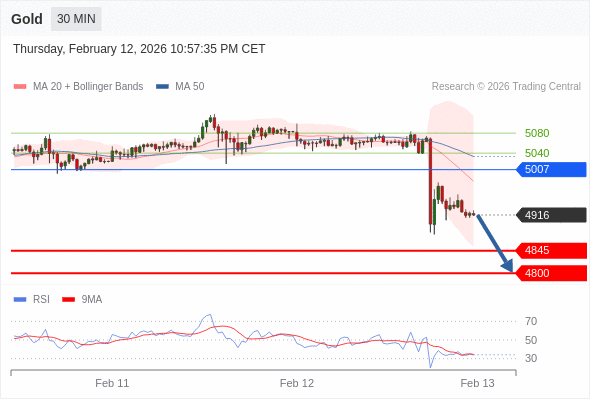 在 5007 之下,看跌,目标价位为 4845 ,然后为 4800 。