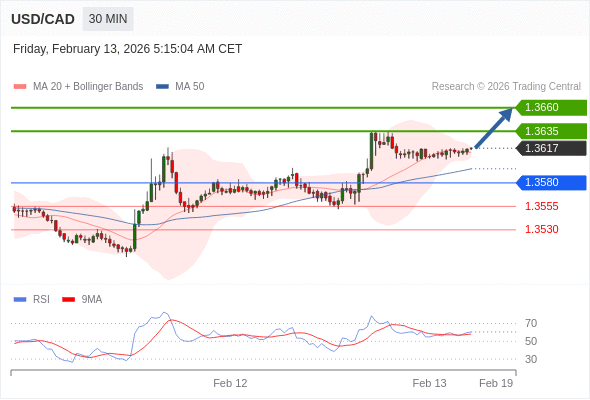 在 1.3580 之上,看涨,目标价位为 1.3635 ,然后为 1.3660 。