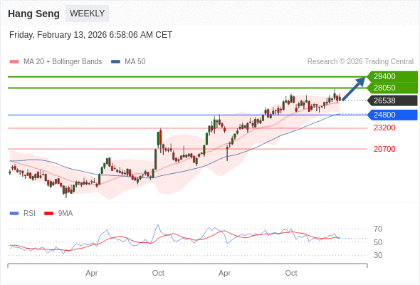 恒生指数 中期: 看涨。