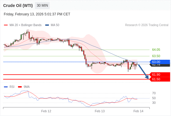 在 63.00 之下,看跌,目标价位为 61.90 ,然后为 61.50 。