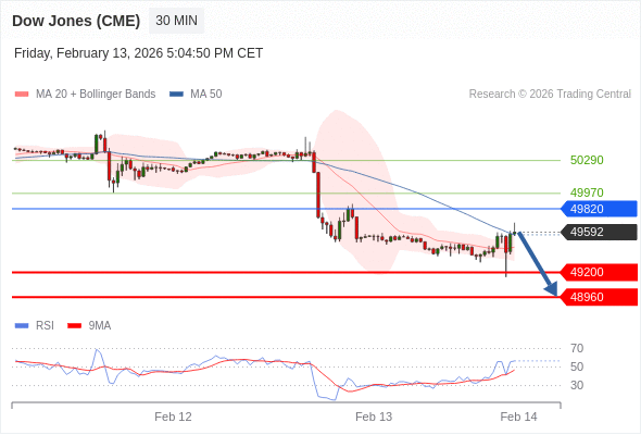 交易策略: 在 49820 之下,看跌,目标价位为 49200 ,然后为 48960 。