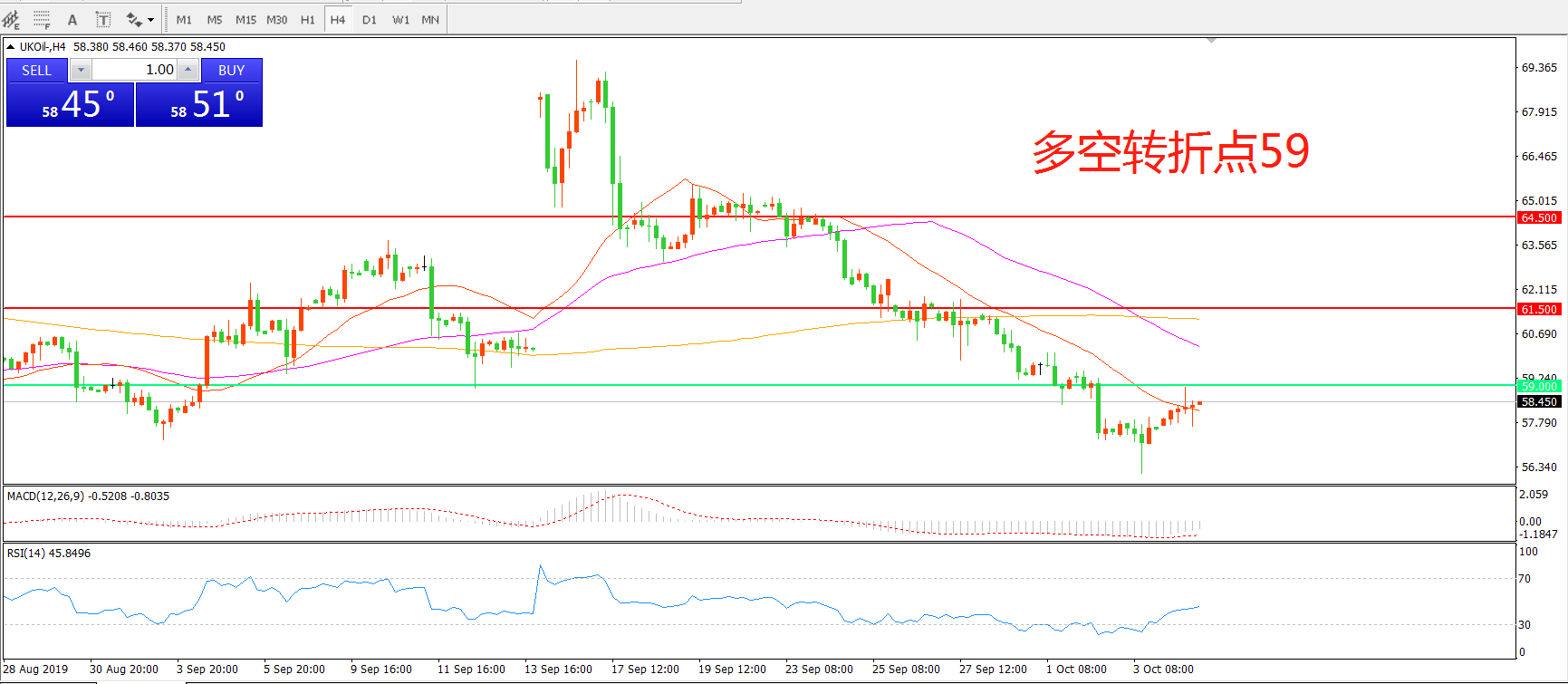 交易策略:在59.00之下看跌,目标57.00    55.00