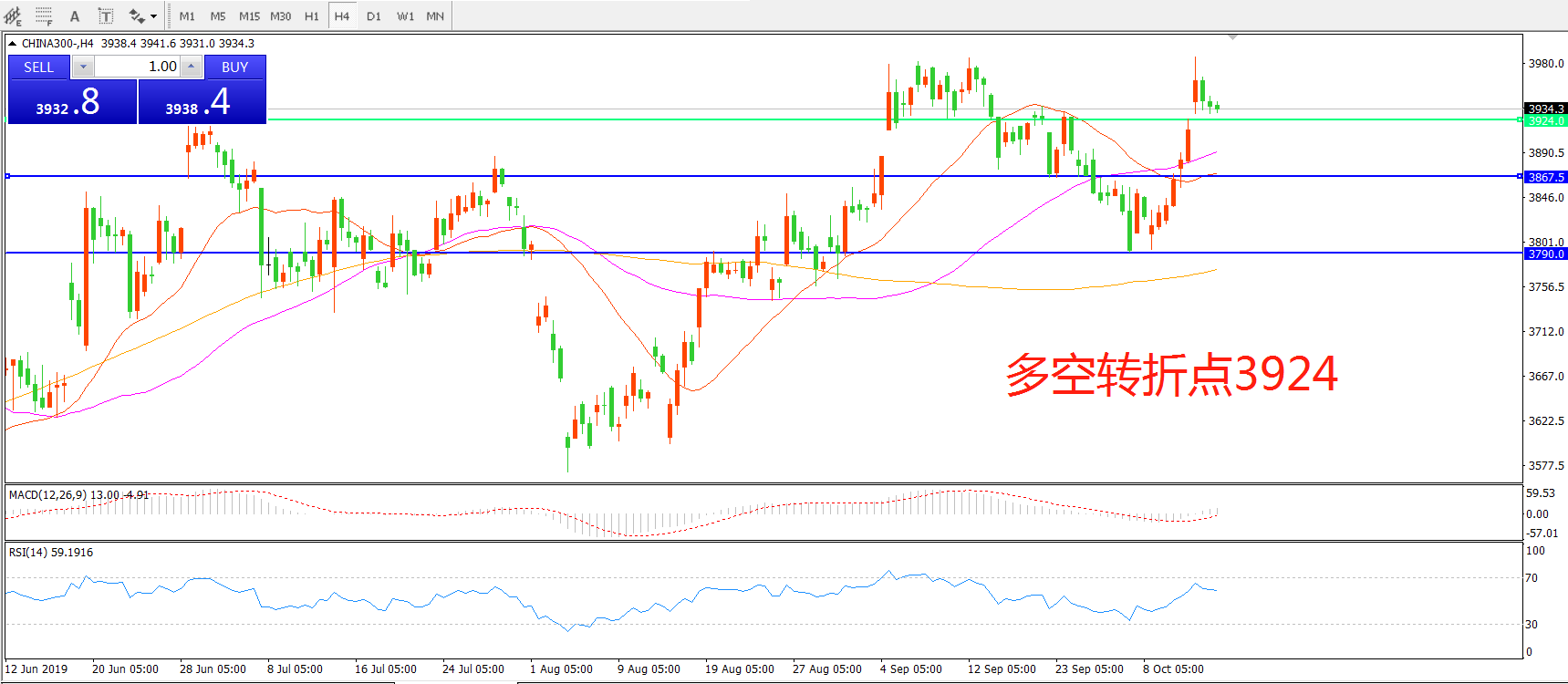 沪深300指数CHINA300 4小时图