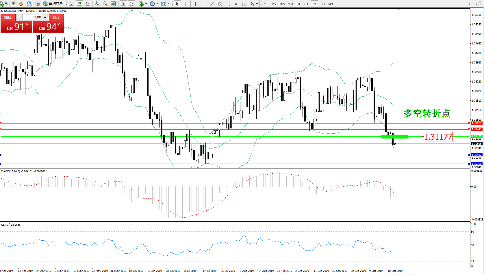 美元加元USDCAD——日K线图显示: