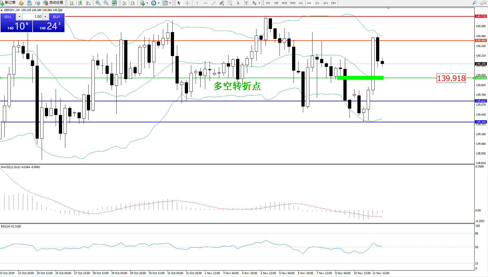 交易策略:139.918上方看涨,目标140.404140.720