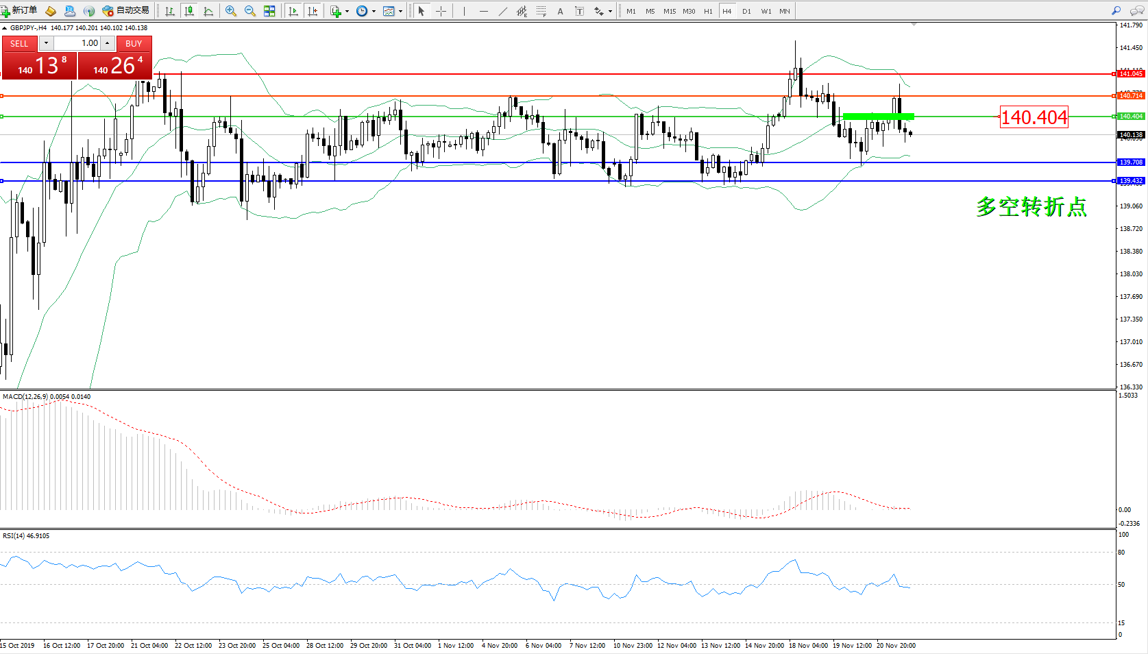 交易策略:140.404下方看跌,目标139.708、139.432