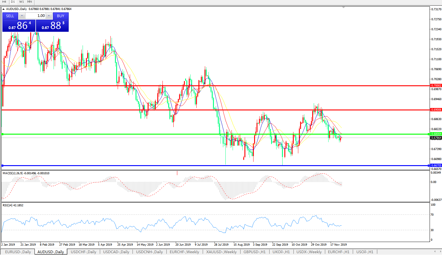 备选策略:0.6800上方看涨,目标0.6900、0.7000