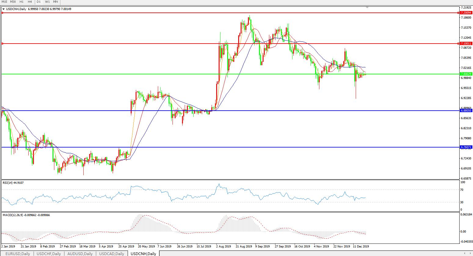 交易策略: 在7.0000之下,看跌,目标价位为6.8805,然后为6.7600。