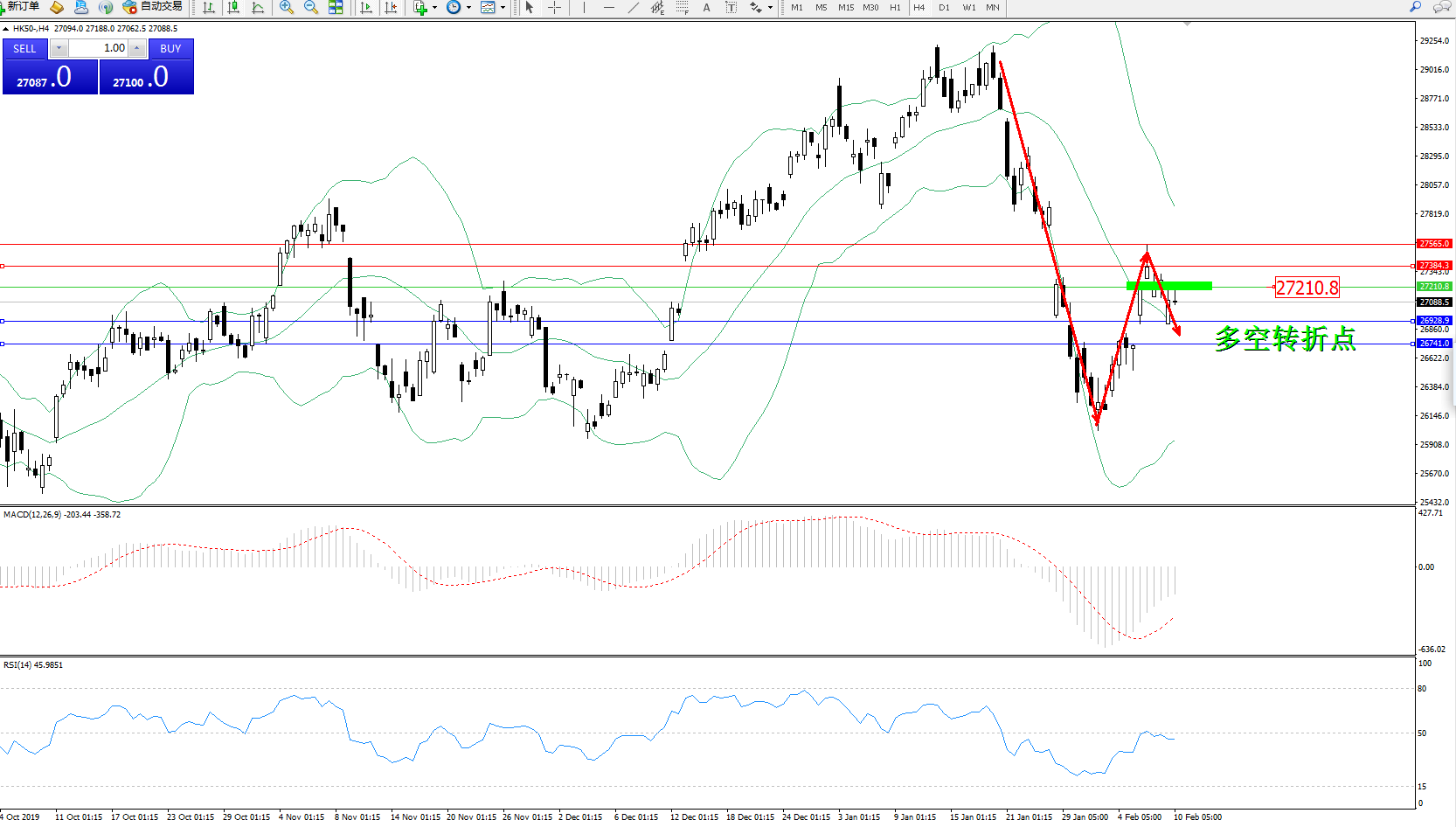 香港恒生指数210日(周一)收盘下跌162.93点,跌幅0.59%,报27241.34点;今日港股市场低迷,主要股指低开震荡收跌。恒指全日未能飘红,市场仍笼罩在肺炎疫情的影响当中。主板全日成交1077.55亿港元,港股通净流入58.15亿港元。阿里概念与系统软件逆势大涨,云办公与线上医疗持续强势,建材水泥股、重型机械股、物管股明显走强,餐饮股跌幅最大,半导体、航空股、濠赌股、乳制品皆成普跌之势。国务院应对新型冠状病毒感染肺炎疫情联防联控机制定于211日(星期二)10时举行新闻发布会,请国家发展改革委、人力资源社会保障部、交通运输部、国家卫生健康委负责人介绍切实加强疫情科学防控,有序做好企业复工复产工作有关情况并答记者问。