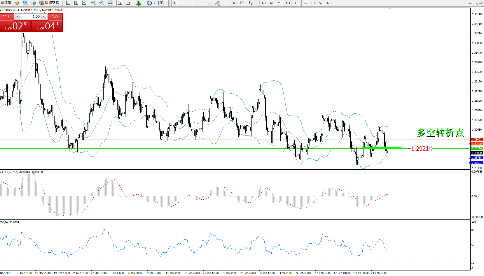 交易策略:1.29214下方看跌,目标1.287981.28577