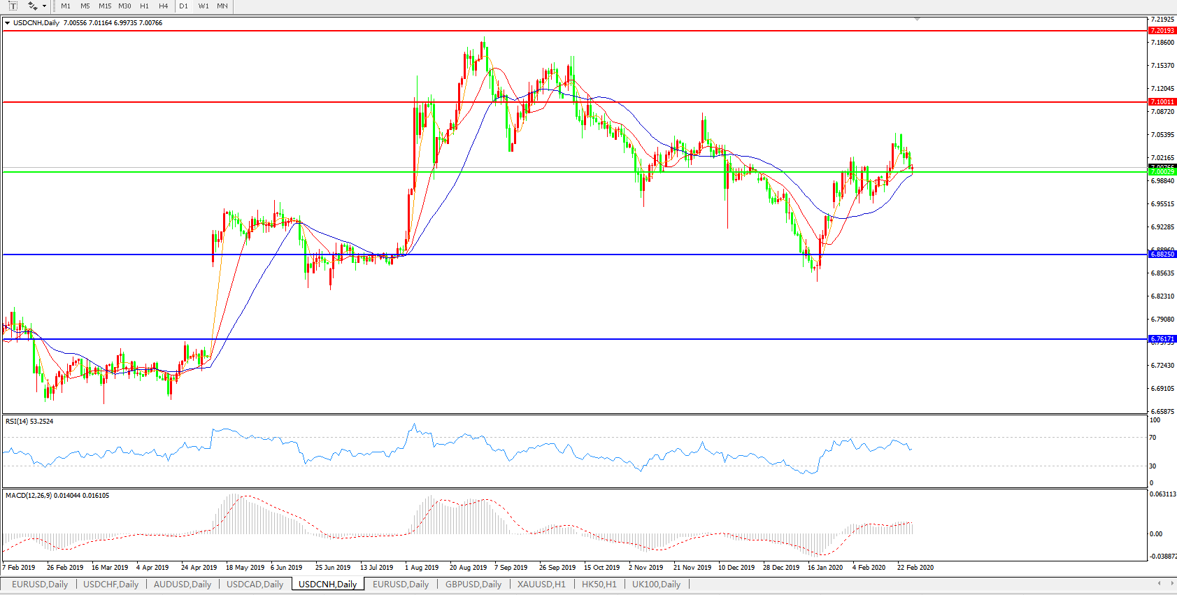 交易策略: 在7.0000之上,看涨,目标价位为7.1000,然后为7.2000。