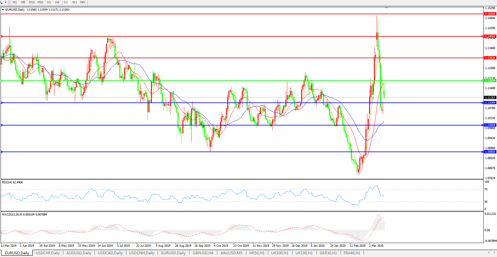 支撑位:1.1100 、1.1000、1.0880