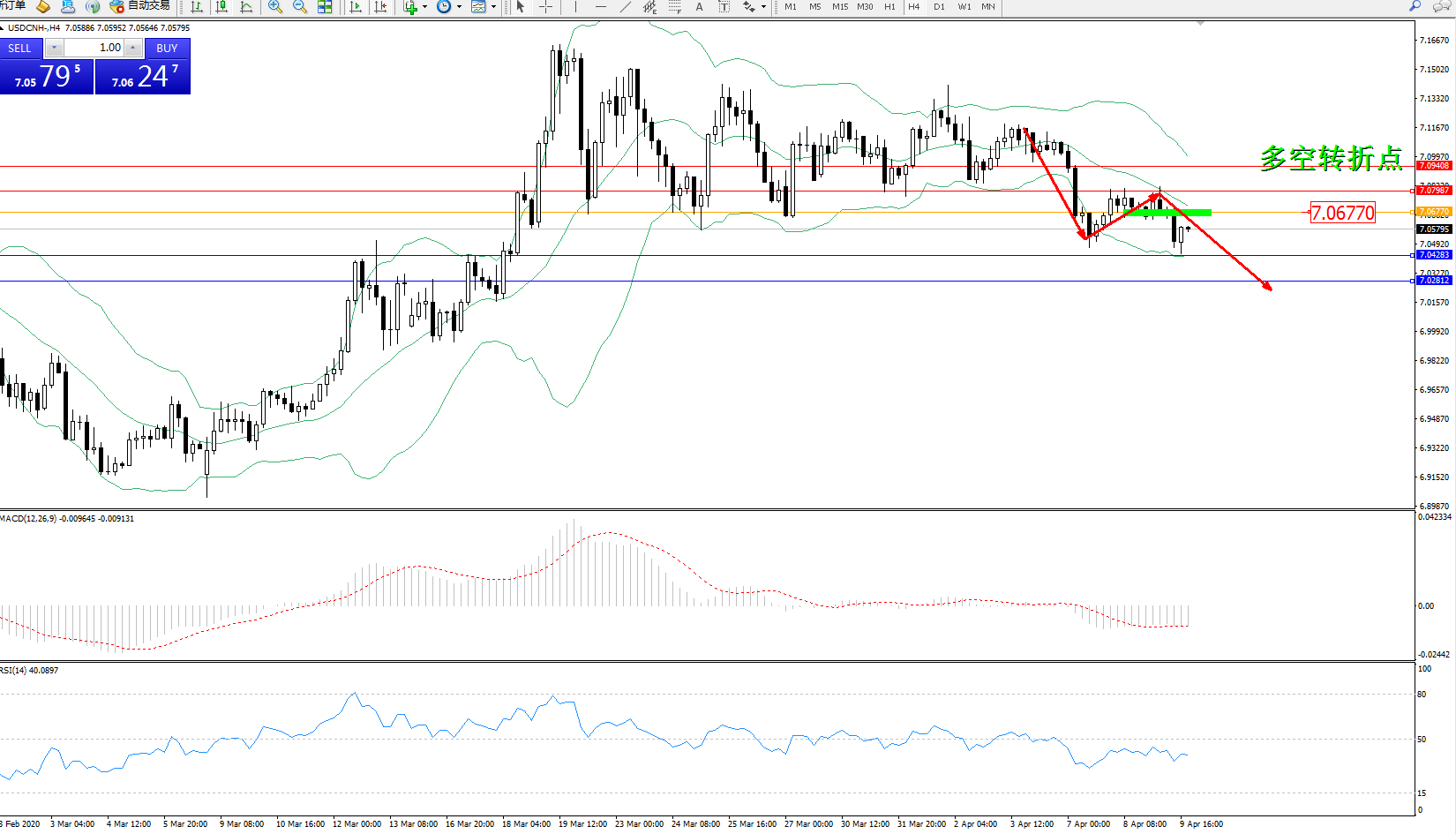 交易策略:7.06770下方看跌,目标7.04283、7.02812