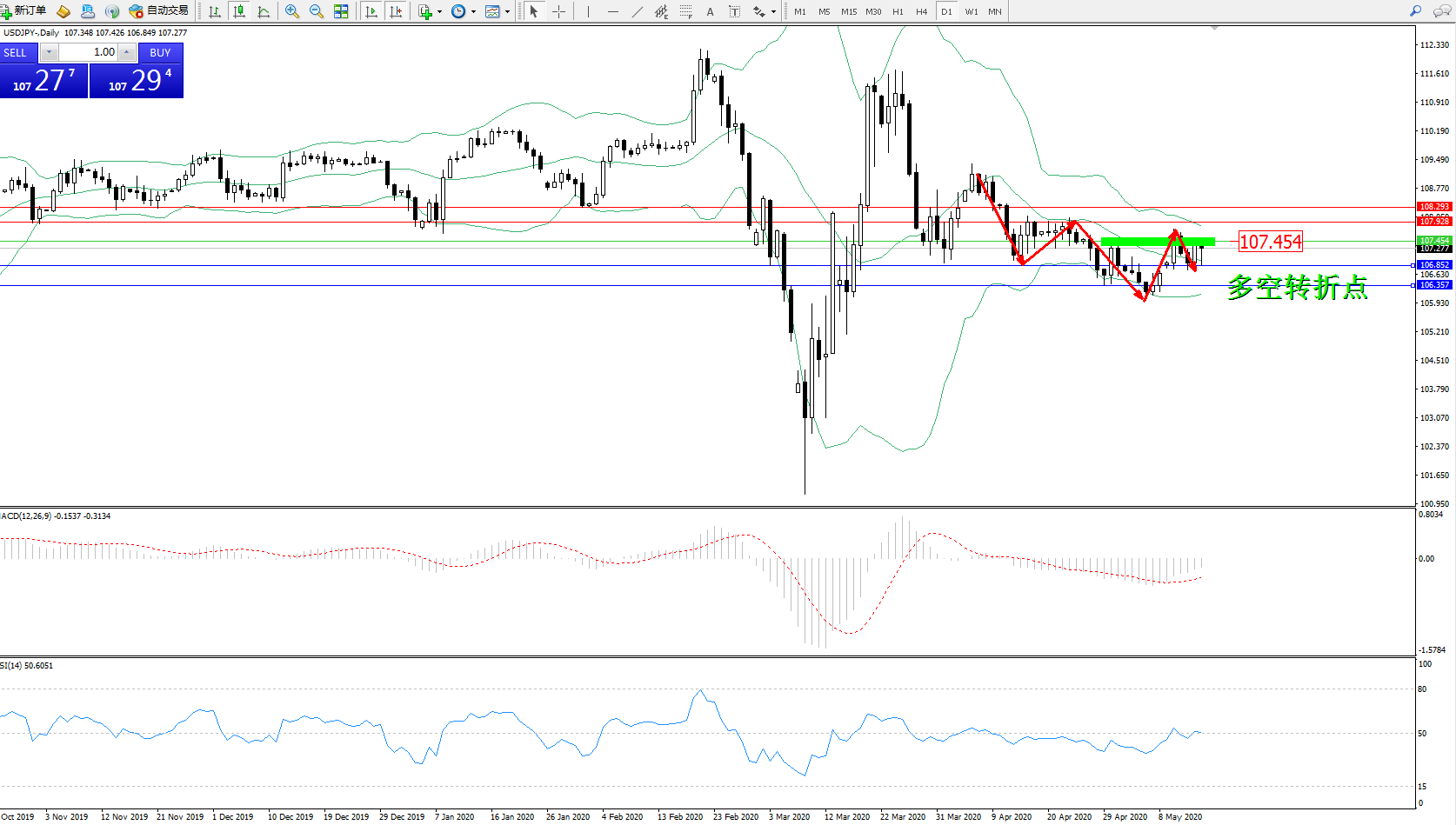 多空转折点:107.454