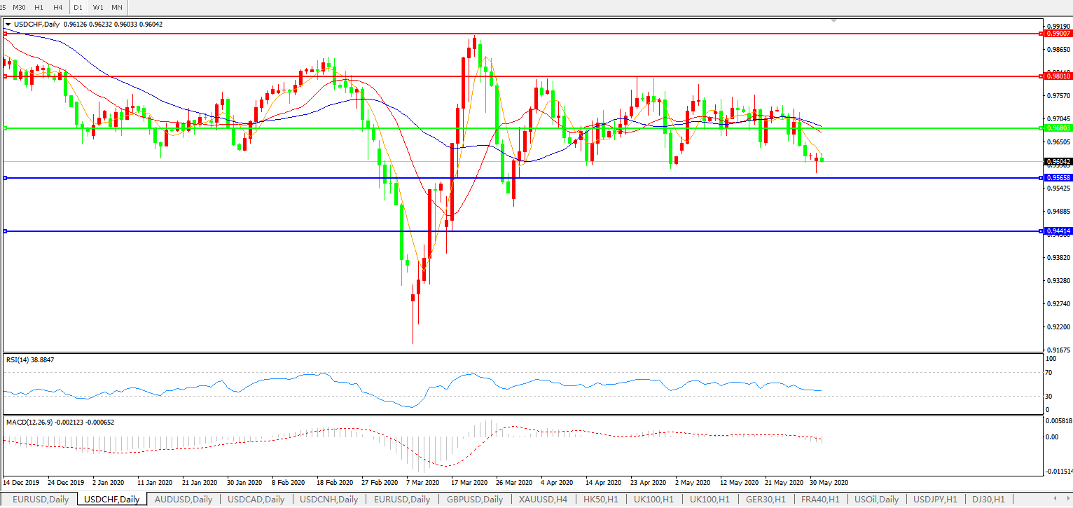 交易策略:0.9680下方看跌,目标0.9565、0.9440