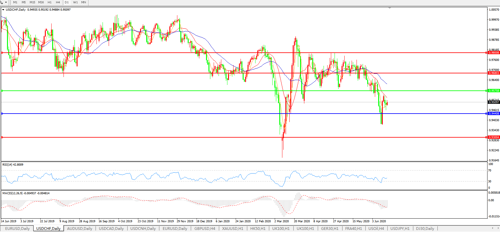 美元兑瑞郎USDCHF    日线图: