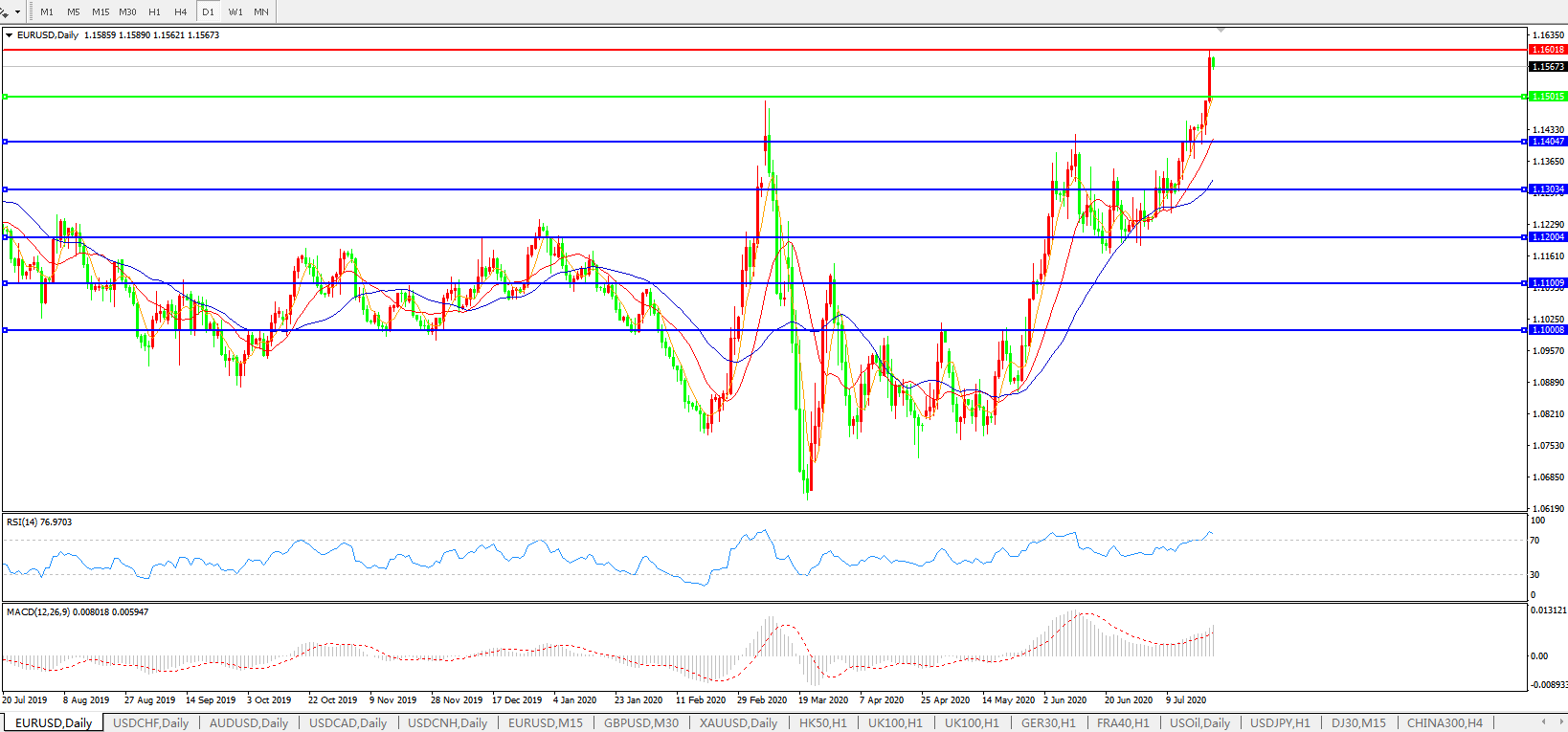 欧元兑美元EURUSD   日线图: