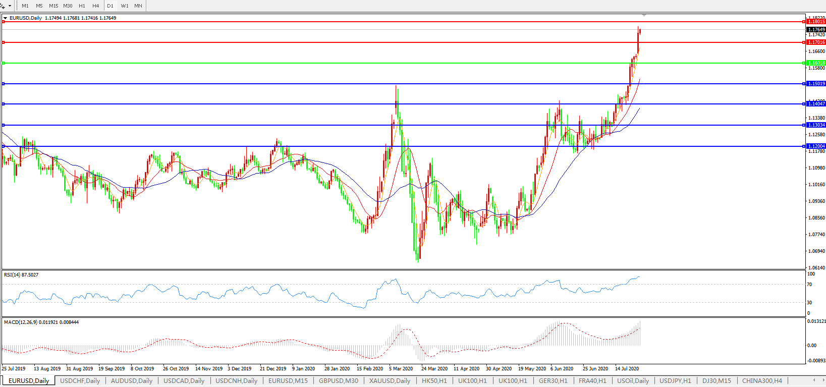 欧元兑美元EURUSD   日线图: