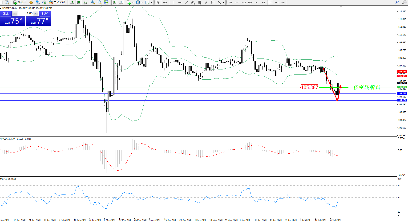 多空转折点:105.367