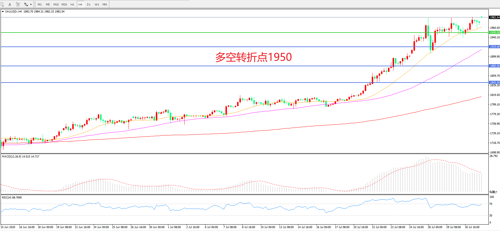 交易策略:在1950.00之上看涨,目标2000.00 2030.00