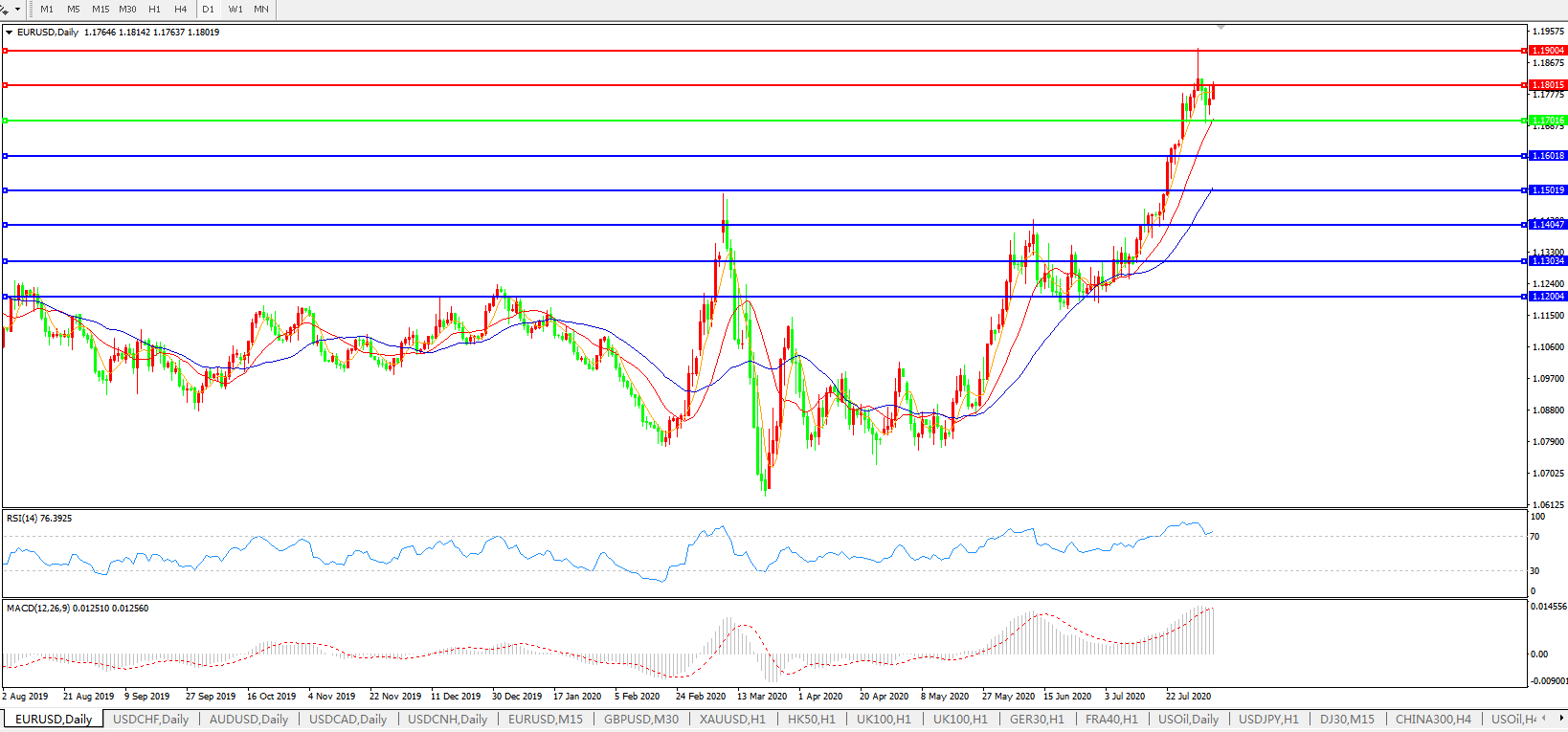交易策略:1.1700上方看涨,目标1.1800、1.1900