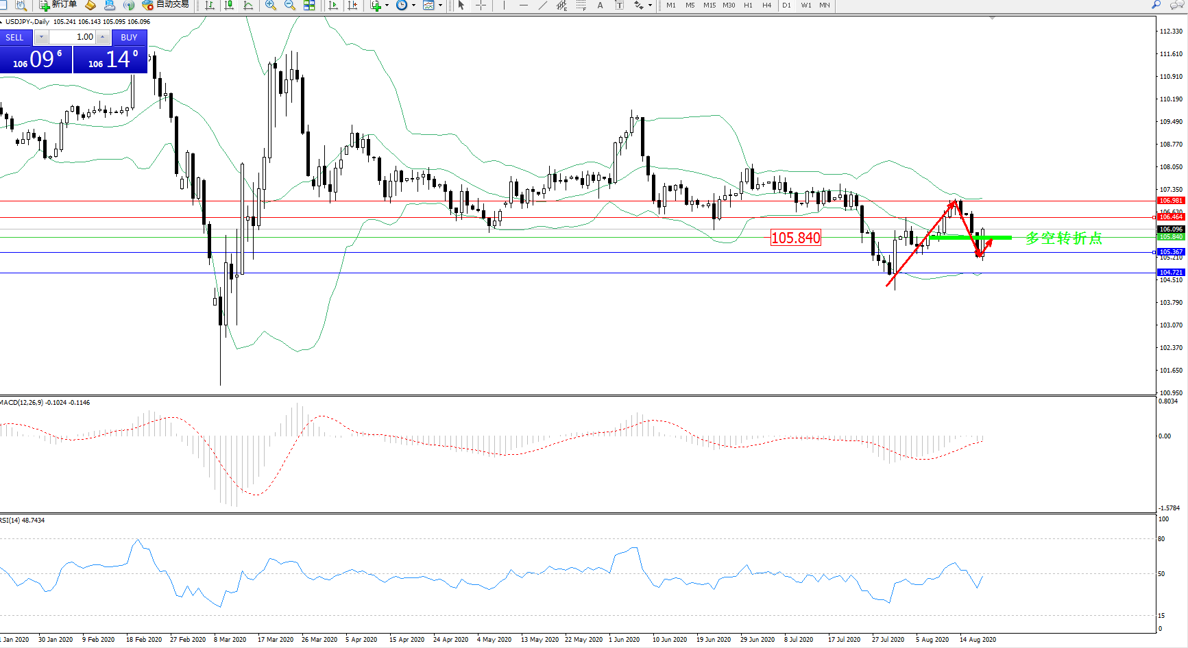 多空转折点:105.840