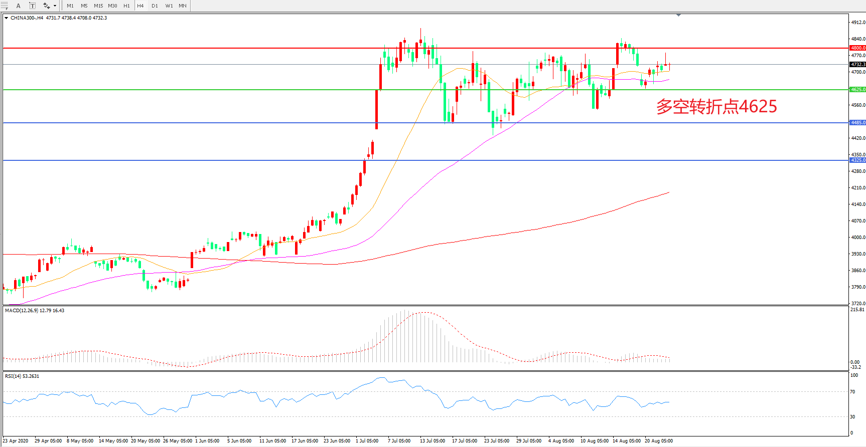 多空转折点:4625.00