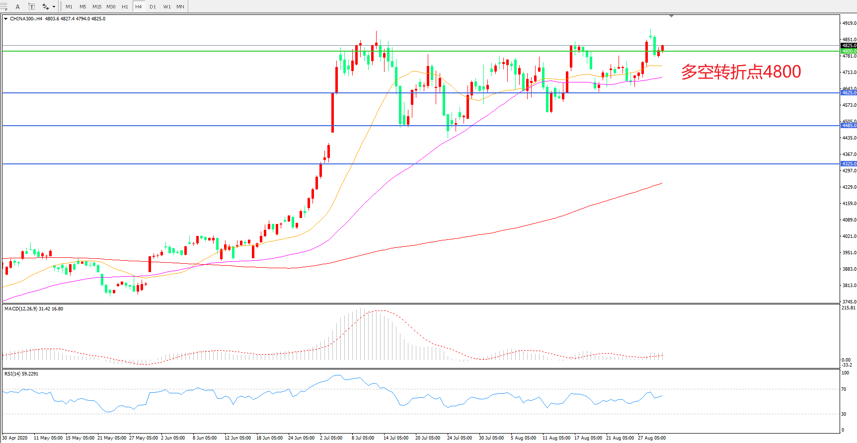 多空转折点:4800.00