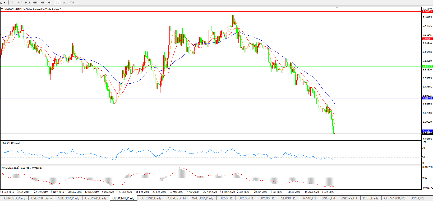 美元兑人民币USDCNH    日线图: