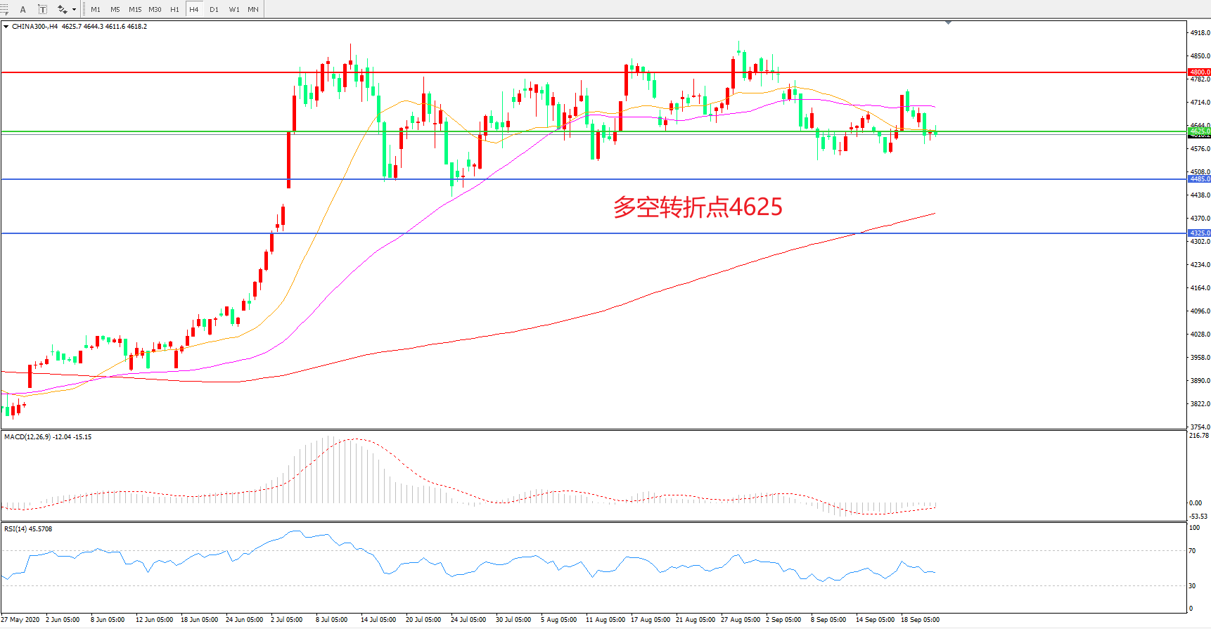 多空转折点:4625.00
