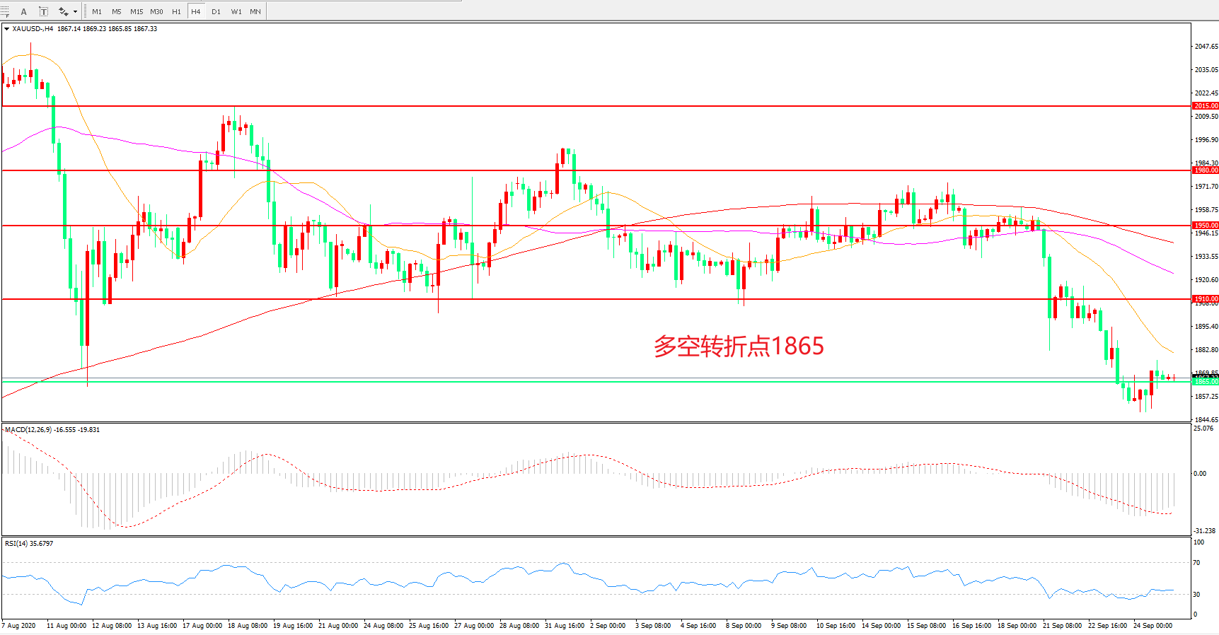 多空转折点:1865.00