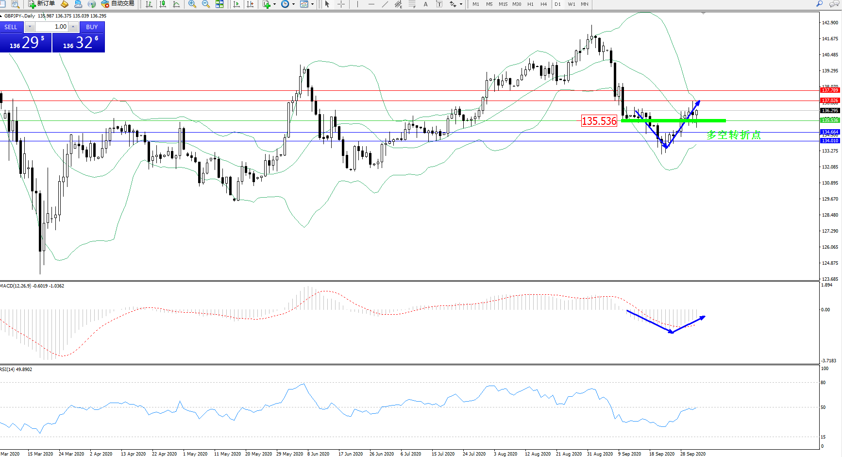 交易策略:135.536上方看涨,目标137.026、137.789