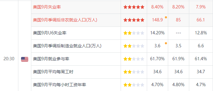 除了特朗普“黑天鹅”外,非农的表现也不尽如人意。根据上周五晚间公布的美国非农就业数据显示,美国9月季调后非农就业人口增加66.1万人,增幅连续第三个月下滑,且为4月以来首次跌至100万人下方。